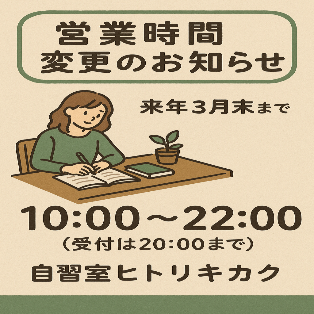 本日から来年3月末まで、開室時間が13:00 → 10:00に早まりました。